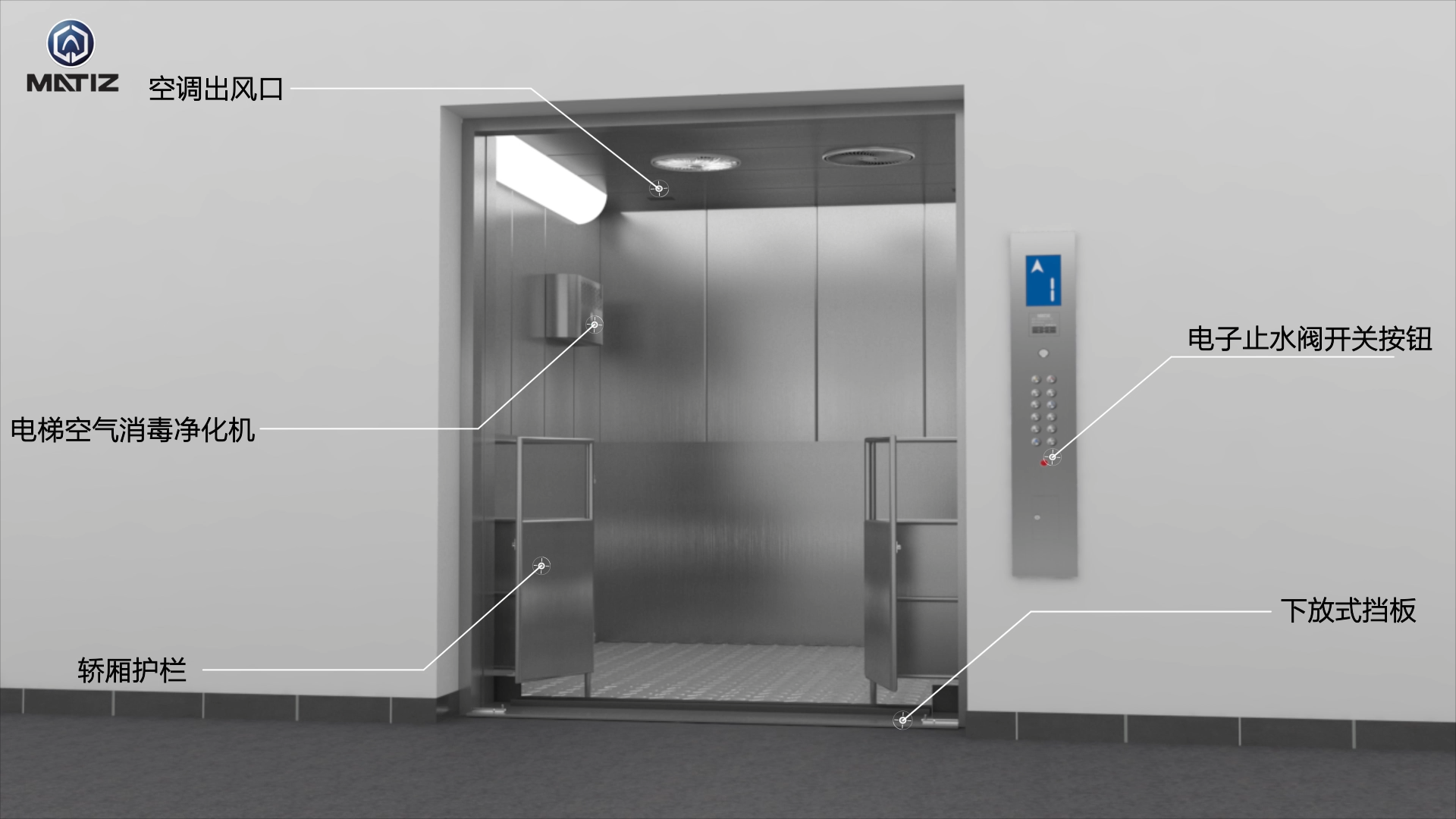 设置红外光谱线杀菌的的灯亦或是气体整洁整洁静化机,要能有效性杀菌的的整洁整洁,保障轿厢内整洁干净。