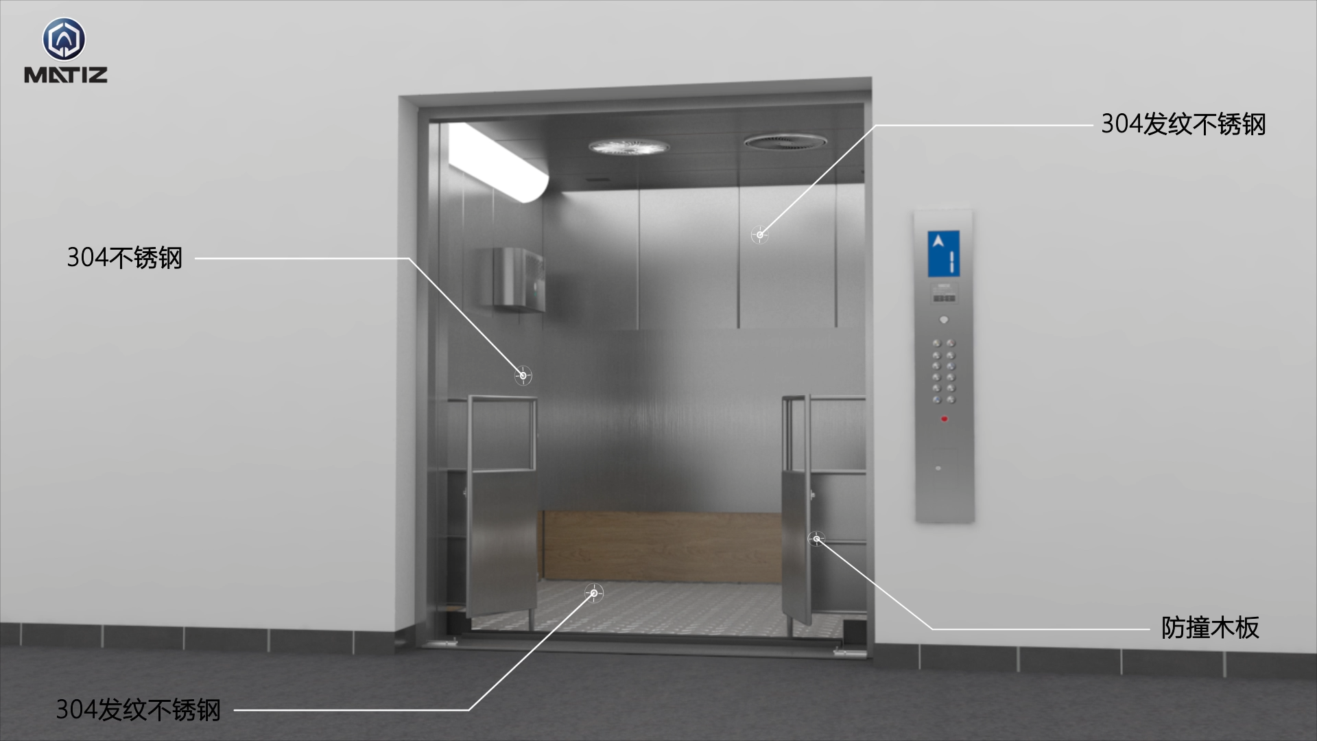 轿厢左、右、后三侧墙板安转保护板,防防栏是可以在高层电梯电脑运行时逃避活猪撞击轿门,逃避进行内部故障。