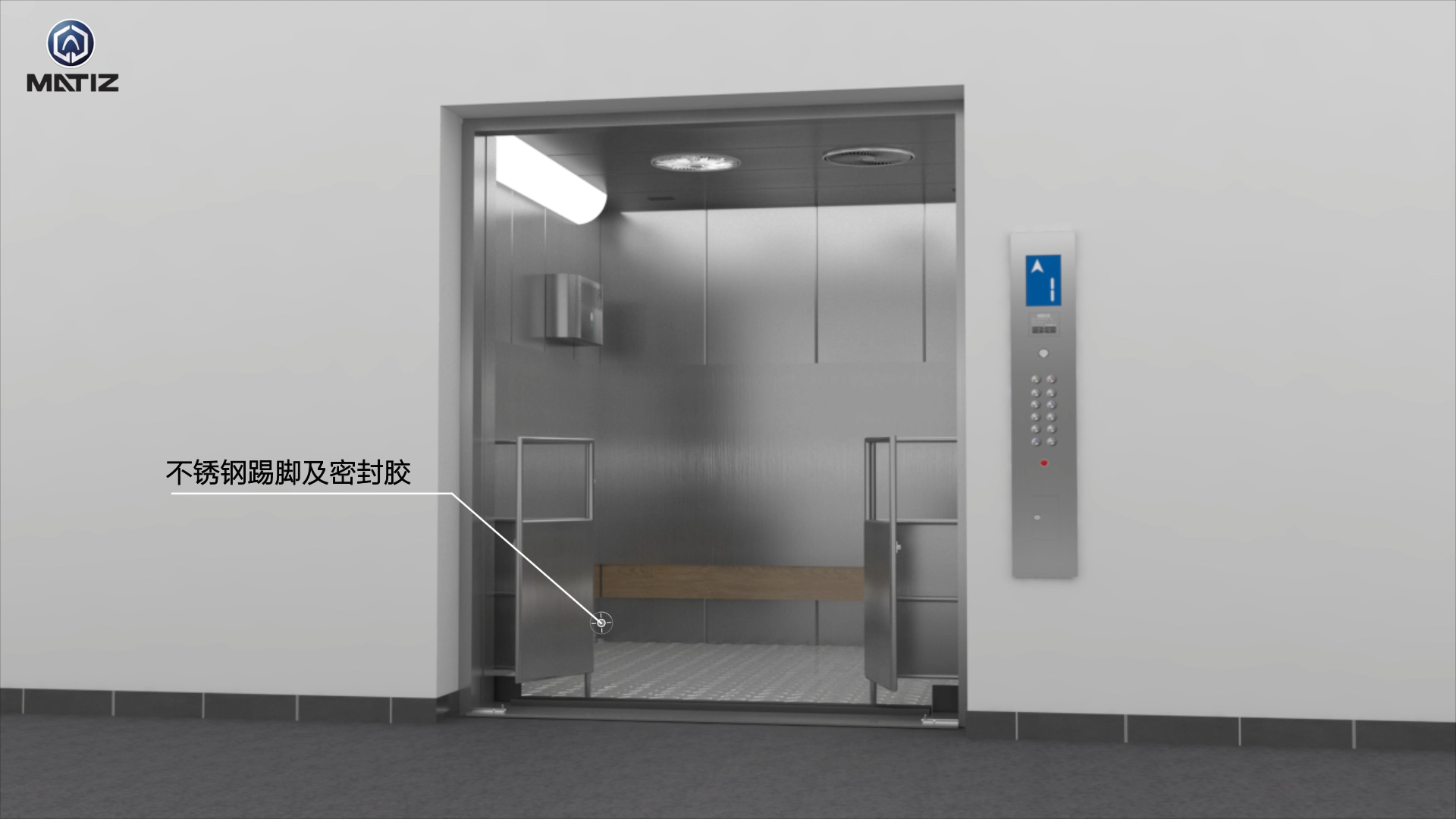 ③层门地坎处配置防渗陡坡,阻止清洁卫生时排泄物、污水处理站开始井道,轿厢内部结构扫除如要。