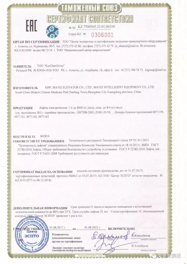 自动扶梯最大化的快速8米/秒,最大化的承重量8000kg采用上海海关聯盟CU-TR安全认证。(实行图标为EAC)