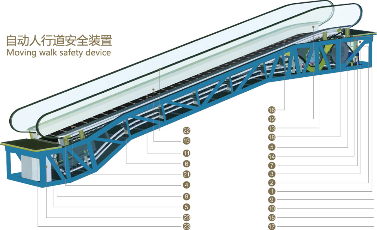 Advanced micro-computer conrol system,overall monitor running states of moving walk,get rid of potential safety hazard and rescue in time.